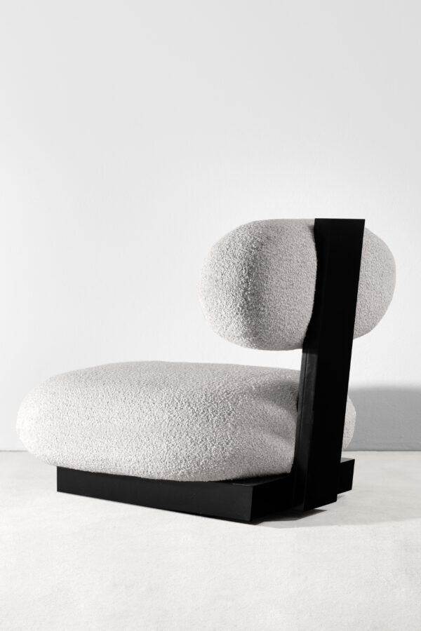 A poltrona Sala tem em seu encosto um espaldar que se tornou o elemento chave do design da peça. Um esqueleto estrutural e estético.
